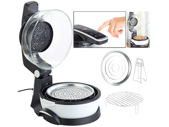 Avec les accessoires adaptés (non fournis), vous pouvez même faire rôtir des brochettes ou un petit poulet, ou encore faire dorer un poisson. Sélectionnez un des programmes préréglés ou bien choisissez vous-même le temps, la température et la vitesse de rotation de la broche.