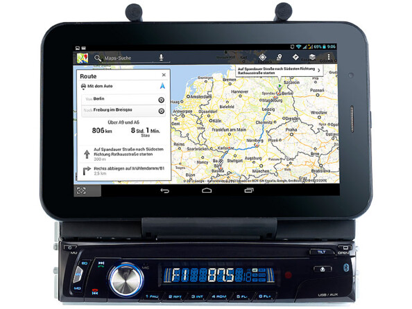 L'autoradio Bluetooth "CAS-4500tab"et son support intégré vous permettent également d'utiliser facilement votre GPS Bluetooth ou la fonction guidage de votre téléphone ou tablette jusqu'à 7" (Samsung Galaxy Tab 3, Asus Nexus, SimValley SX7).