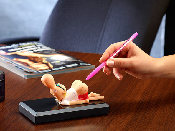 Le personnage prend vie lorsque vous y insérez le stylo. Il pousse différents cris et se tord pour votre plus grand plaisir.