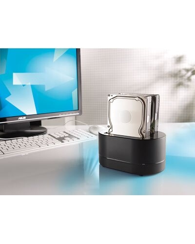 Vous pouvez aussi tout simplement étendre l'espace de stockage de votre ordinateur jusqu'à 2To. Grâce à la double interface USB et eSata, la docking station peut se brancher à n'importe quel PC, et elle accueille aussi bien les disques SATA 2,5" que 3,5".