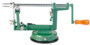Il vous suffit de placer la pomme sur l'appareil, de tourner la manivelle pour qu'une lame enlève proprement l'épluchure de la pomme et qu'une deuxième lame la découpe en spirale.