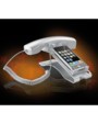 Deux étapes suffisent pour profiter de ses atouts : posez le téléphone et branchez-le via la prise jack au combiné, c'est tout. L'écran de votre iPhone reste bien visible et accessible, et vous retrouvez le plaisir de téléphoner à l'ancienne, le tout dans un design très moderne.