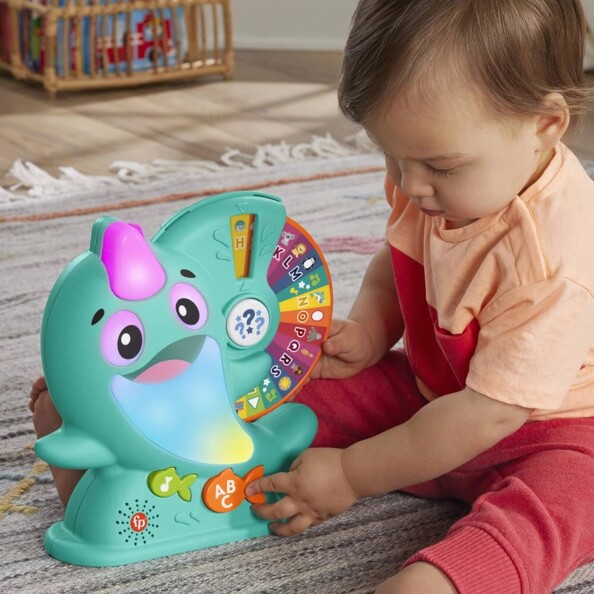 Faites de ce narval lumineux et amusant le compagnon inséparable de votre tout-petit et offrez-lui un jouet qui le fera grandir tout en s’amusant.