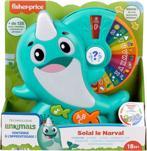 Profitez de Solal le Narval, le compagnon interactif de la collection Linkimals de Fisher Price, conçu pour éveiller et divertir les enfants dès 18 mois.