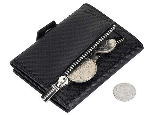 Grâce au compartiment supplémentaire pour pièces et billets, vous pouvez également emporter votre argent liquide avec vous. Ainsi, l'étui à cartes de crédit fait également office de porte-monnaie !