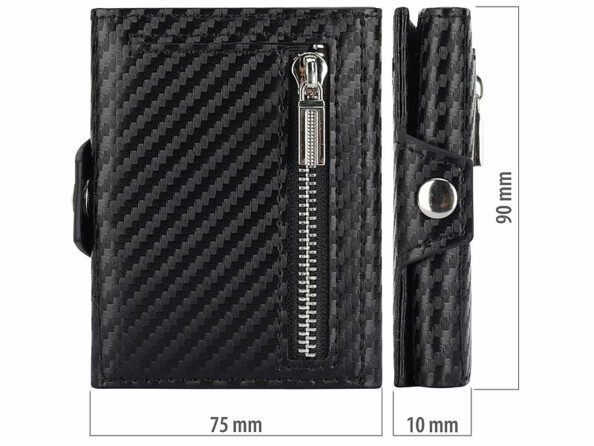 Conservez vos cartes de crédit et votre argent liquide avec style et en toute sécurité grâce à ce portefeuille RFID de qualité signé Carlo Milano ! Conçu dans un design compact, il offre suffisamment de place pour accueillir jusqu'à 5 cartes. Il suffit d'insérer les cartes dans les compartiments prévus à cet effet et elles sont immédiatement protégées contre le vol de données !