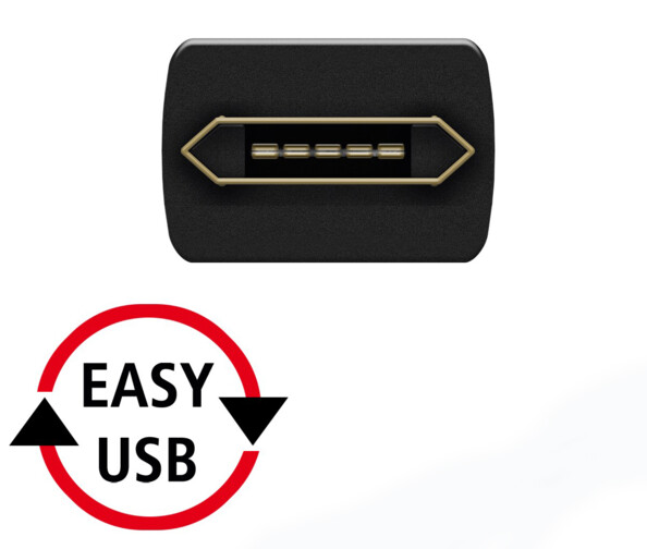 Conçu pour le chargement comme pour le transfert de données, ce câble a surtout un atout majeur : il dispose d'un connecteur utilisable des deux côtés à chaque extrémité. La fiche USB comme la micro USB peuvent donc être branchées dans n'importe quel sens, à "l'endroit" ou à "l'envers". Il est donc inutile de tourner et retourner les câbles.