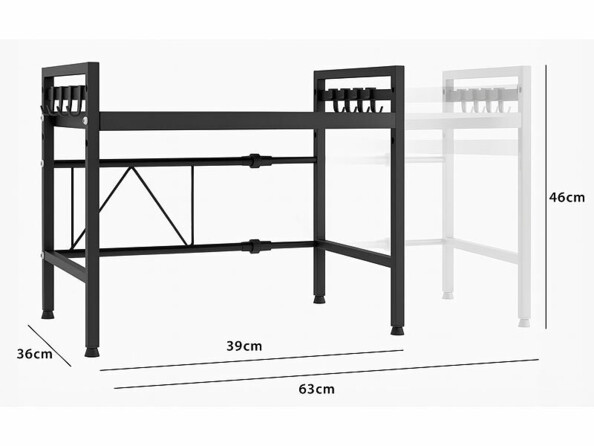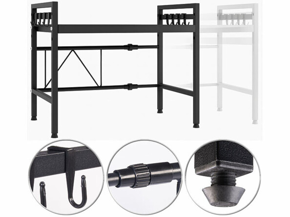 L'étagère extensible pour micro-ondes vous offre un espace de rangement supplémentaire dans un espace généralement réduit. La largeur peut être réglée de 39 à 63 cm selon vos besoins : c'est idéal pour les petites cuisines et les recoins exigus.