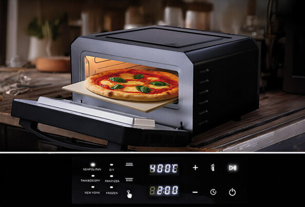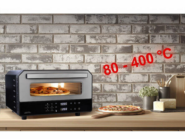 Ce four à pizza électrique 1700 W vous permet de préparer des pizzas à la hauteur de votre restaurant italien préféré. Il est équipé d'une pierre réfractaire, et peut atteindre des températures allant jusqu'à 400 °C (752 °F). Vous obtenez ainsi des fonds croustillants et du fromage fondant en un temps record.