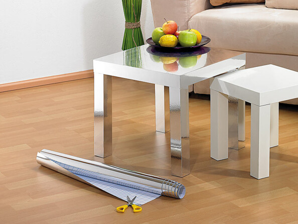 Cette feuille chromé se découpe à la taille et à la forme voulue. Parfait pour refléter la lumière et donner de l’espace à une pièce, vous pouvez aussi l’utiliser pour des décorations originales.