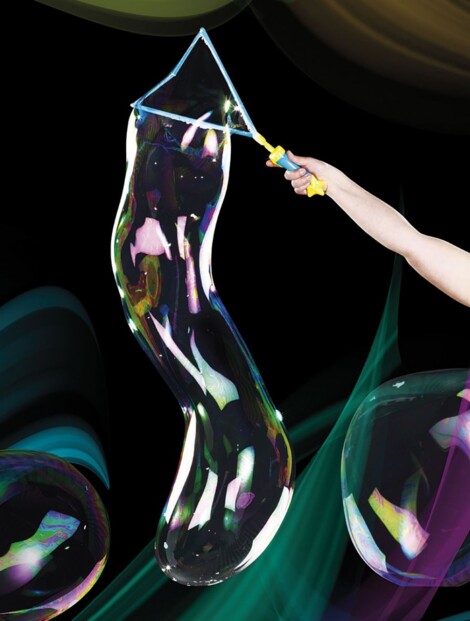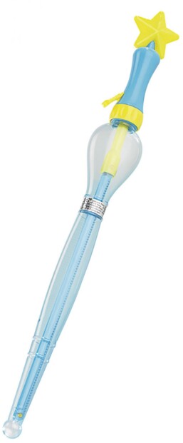 Grâce à cette baguette magique, réalisez des bulles de 30 cm ! Remplissez simplement le réservoir avec du liquide à bulles, retirez la baguette magique et en appuyant sur le bouton du manche, un triangle s’ouvre. Faites ensuite quelques gestes dans l’air et admirez les bulles géantes !