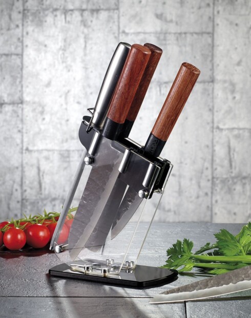 - Bloc à couteaux avec fourreaux transparents en verre acrylique