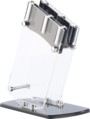 Ce support offre une protection parfaite à chaque couteau, qui dispose de son propre fourreau en verre acrylique. L'ensemble constitue une véritable pièce maîtresse de la cuisine, à la fois légère et dynamique, dont le design original repose sur la transparence du verre acrylique.