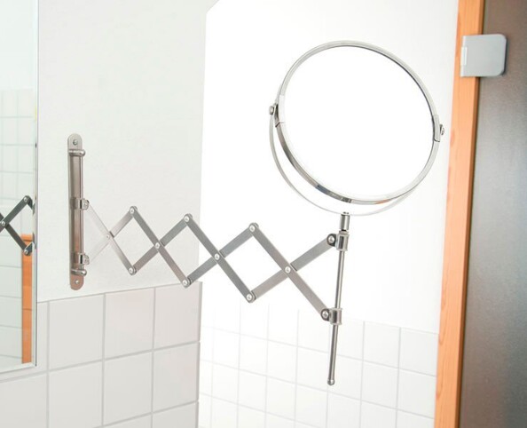 L'atout de ce miroir : il se fixe au mur. Lorsque vous en avez besoin, dépliez simplement le support (jusqu'à 60 cm !) pour placer le miroir dans la position souhaitée. Vous n'avez même pas besoin d'une surface sur laquelle le poser ! Une astuce gain de place pour les petites salles de bains.