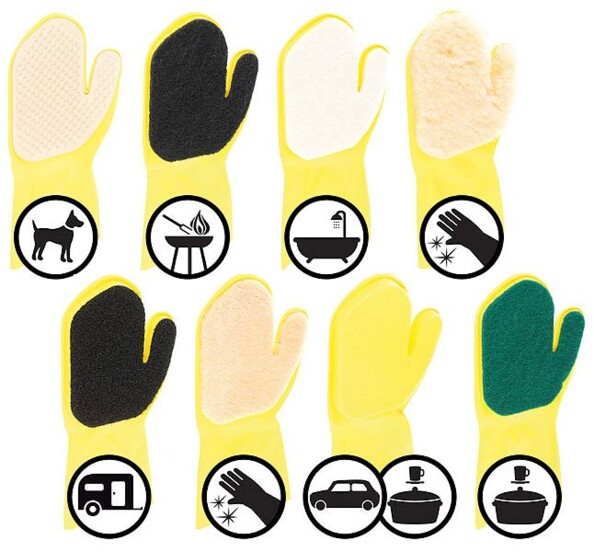 Panachage de 8 sortes de gants spécial nettoyage pour vaisselle, jantes, gril...