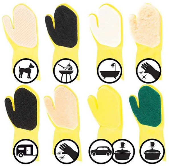 Panachage de 8 sortes de gants spécial nettoyage pour vaisselle, jantes, gril...