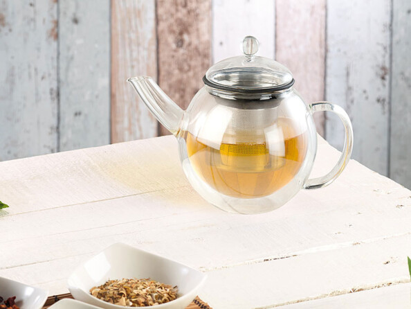 - Théière 100% en verre résistant à la chaleur, filtre en acier inox