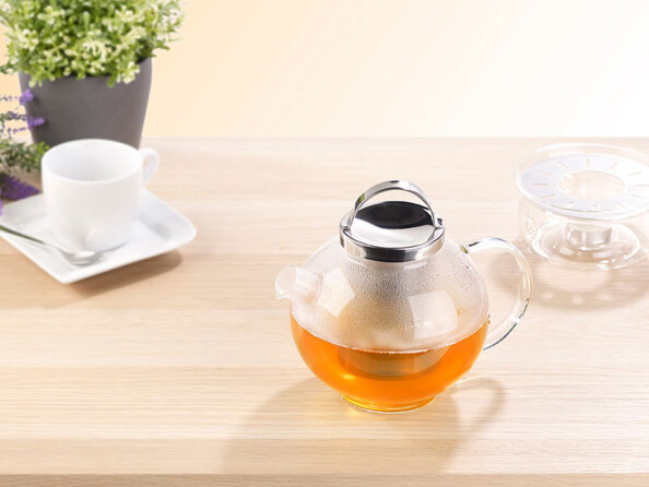 Placez ensuite la théière sur le réchaud et allumez une bougie chauffe-plat. Votre thé reste chaud tasse après tasse.
