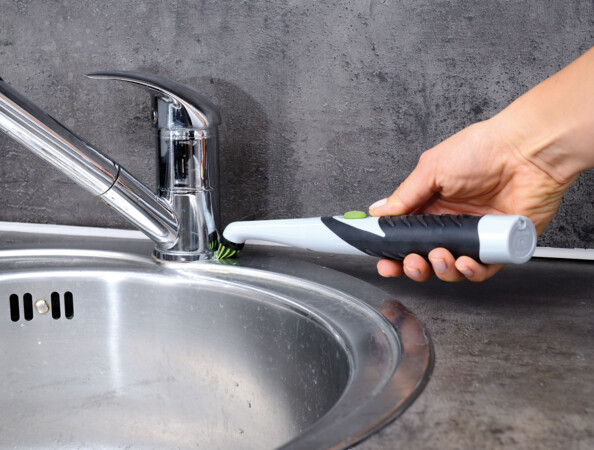 - Atteint même les endroits difficiles d'accès : idéale pour nettoyer le robinet, l'évier, la cuisinière, les joints de carrelage, les chaussures, etc.