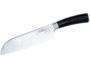 Avec sa lame à extrémité incurvée, le couteau Santoku est conçu pour être utilisé près de la planche à découper. Il est idéal pour hacher, pour tailler des tranches fines de viande et des lamelles de fruits ou de légumes. C'est l'outil le plus adapté pour préparer des sushis.