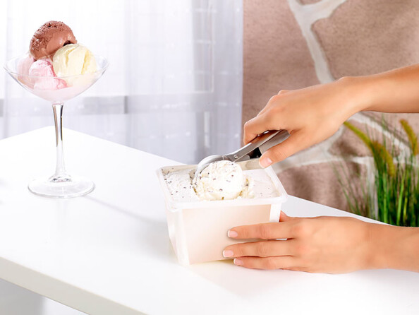 - Utilisation simplissime grâce au bouton situé sur le manche de la cuillère à glace.