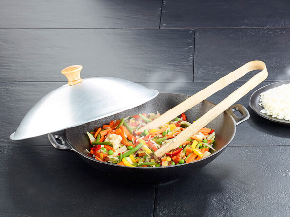 Grâce à leur résistance à des températures très élevées, les woks en fonte peuvent même être utilisés sur un barbecue. C'est idéal pour des légumes croquants, ou du canard croustillant.