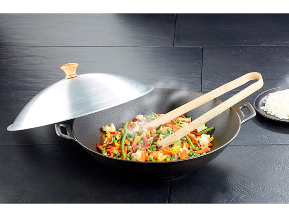 Grâce à leur résistance à des températures très élevées, les woks en fonte peuvent même être utilisés sur un barbecue. C'est idéal pour des légumes croquants, ou du canard croustillant.