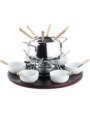 - Service à fondue 24 pièces : carrousel à sauces, caquelon avec anneau porte-fourchettes, brûleur à pâte avec couvercle, support, 8 fourchettes, 6 bols pour les sauces