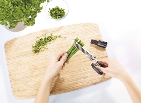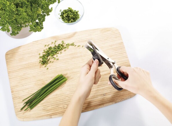 Ces ciseaux de cuisine vous permettent de ciseler persil, ciboulette, menthe ou basilic de manière à la fois rapide et précise, le tout sans robot ou appareil encombrant à sortir.