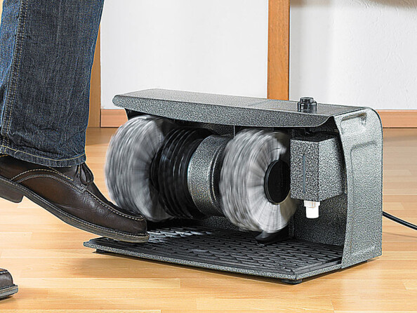 Plus besoin désormais de vous encombrer de brosses, de tubes de cirage et de chiffons : placez votre pied sous la cireuse, elle s'occupe du reste ! Diverses brosses rotatives nettoient vos chaussures et les polissent pour les faire briller. En une minute, celles-ci sont comme neuves !