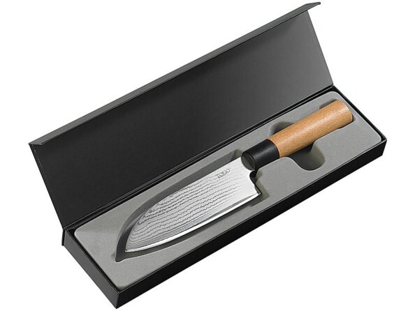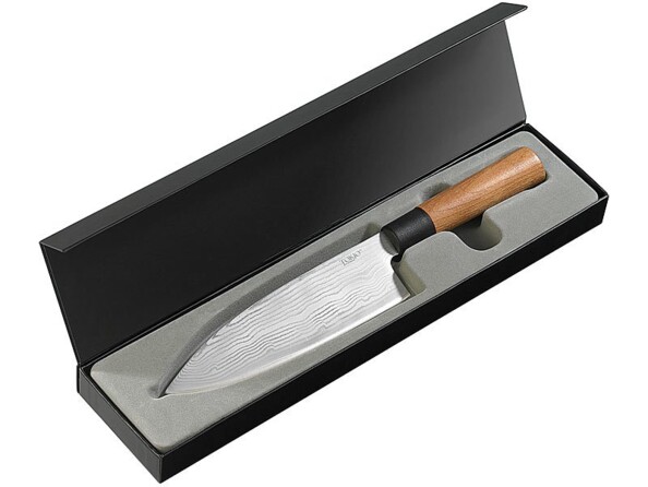 - Equipement professionnel contenant 6 couteaux de cuisine pour toutes les utilisations : 2 couteaux de cuisine (lame 11,5 cm et 20 cm), 1 couteau Santoku (lame 16,5 cm), 1 hachoir (lame 17,5 cm), 1 couteau à viande (lame 21,5 cm) et 1 couteau à pain (lame 22,5 cm)