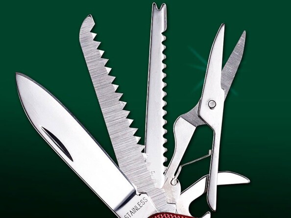 Ce couteau multifonction conçu sur l'exemple du célèbre "couteau suisse" de Victorinox propose 12 outils indispensables pour campeurs, randonneurs et autres aventuriers en herbe...