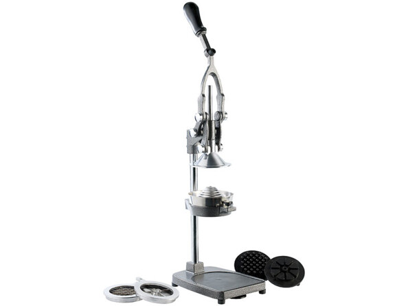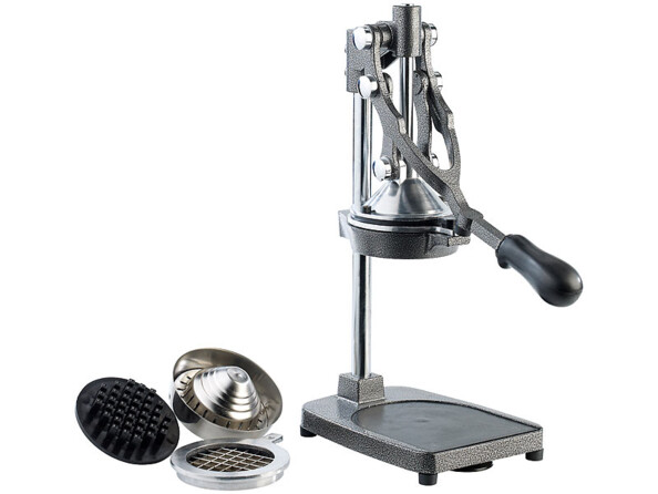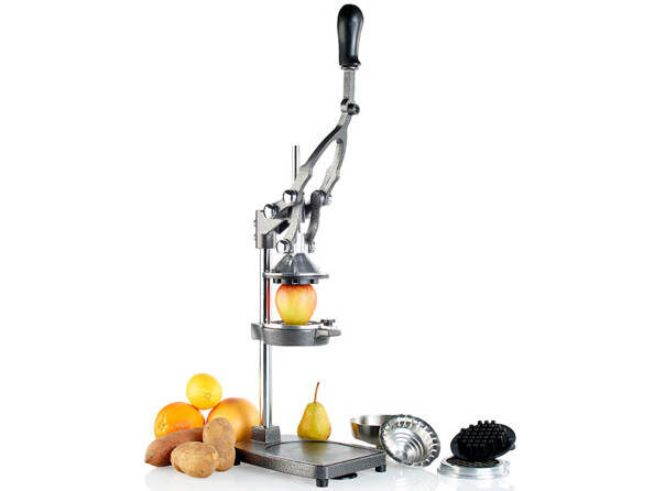 Coupez les fruits et légumes à la main ? C’est du passé ! Grâce à cette presse multifonction, vous pouvez désormais préparer des tartes ou des frites en un tour de main. Choisissez une lame, placez une pomme ou une pomme de terre sur la presse et appuyez. Vous obtenez ou choix des quartiers de pommes débarrassés de leur trognon ou des bâtonnets de pomme de terre réguliers et bien taillés, parfaits pour faire des frites maison. Les quantités ne sont plus un problème : en quelques instants, vous coupez assez de fruits ou de légumes pour régaler toute la famille. Très polyvalente, la presse multifonction est aussi un presse-agrumes remarquablement efficace. Elle vous permet en effet d’extraire jusqu’à 20 % de jus en plus qu’avec un presse-agrume habituel, et cela en un temps record !