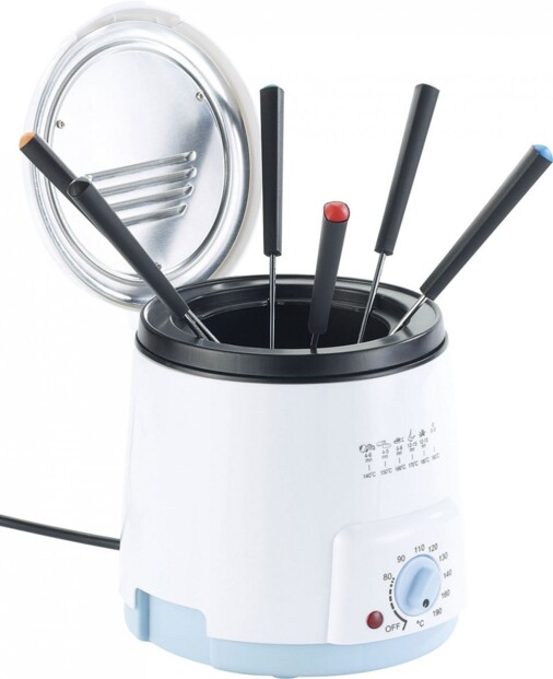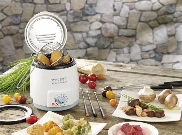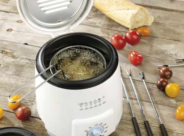 Astuce suplémentaire, cette mini-friteuse remplace également un caquelon à fondue. Avec un anneau anti-éclaboussure et 6 fourchettes colorées, votre friteuse se transforme en appareil à fondue : un appareil 2 en 1 pour un véritable gain de place.