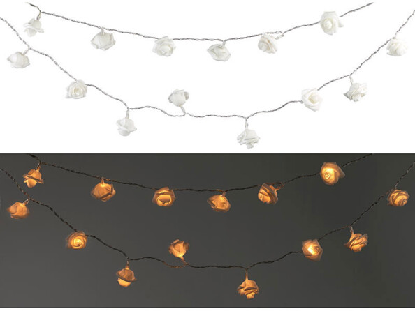 Cette guirlande florale s'allume automatiquement à la tombée de la nuit grâce au capteur de luminosité.
