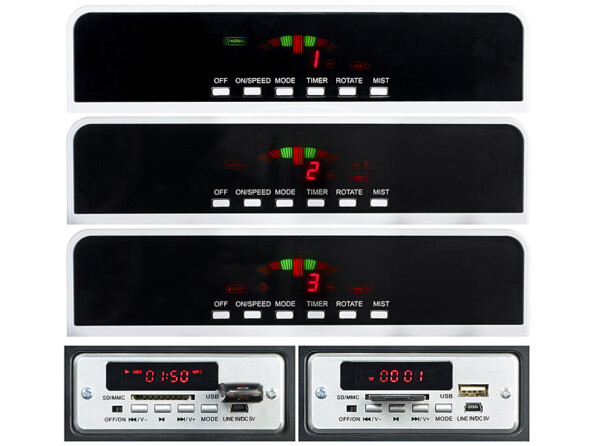 Car ce ventilateur tout-en-un est également un lecteur MP3 qui vous permet de lire vos fichiers audio enregistrés sur clé USB ou une carte SD. Pour un double rafraîchissement : le ventilateur souffle de l'air tout en diffusant une brume incroyablement fine grâce à la vaporisation par ultra-sons. Fini la chaleur insoutenable et l'air trop sec !