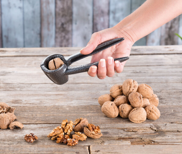 Mais ce n'est pas tout : glissez une noix dans la pince, serrez, terminé ! C'est la méthode la plus efficace pour ouvrir des noix, même si vous manquez de force dans les doigts.