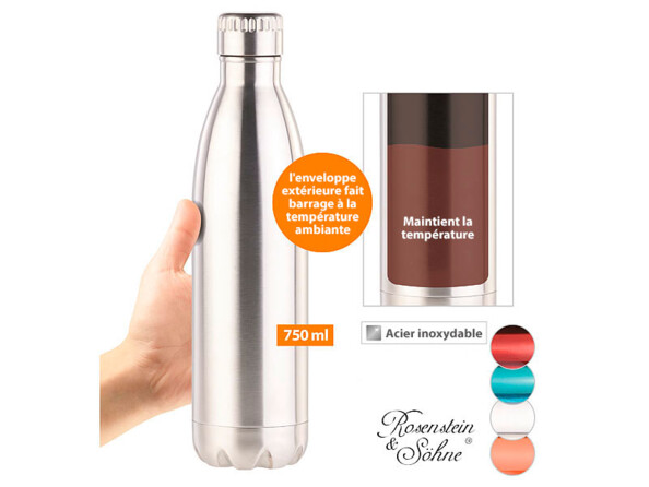 - Lot de 2 bouteilles isothermes à double-paroi en acier inoxydable, par Rosenstein & Söhne