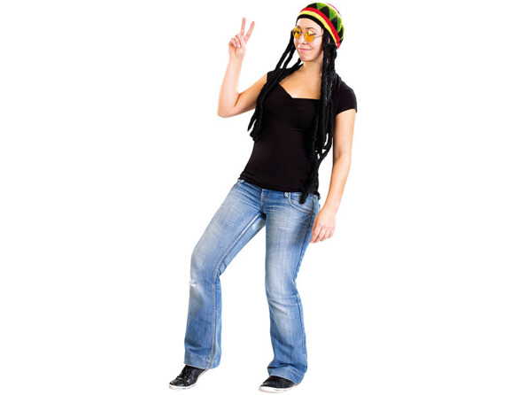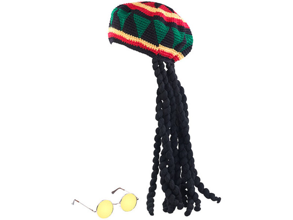 Un déguisement original sans grand effort : les dreadlocks sont déjà fixées à la casquette. Les lunettes hippie jaunes à verres ronds complètent parfaitement la tenue. Homme rasta ou beauté à dreadlocks : la casquette va aussi bien aux hommes qu'aux femmes.
