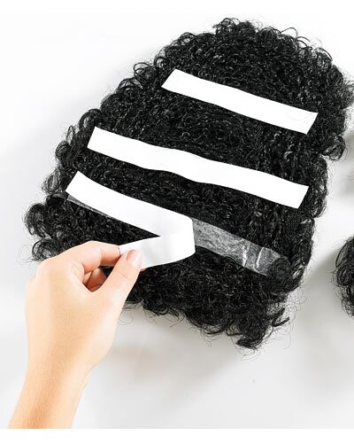Collez simplement les poils et les favoris à l'aide du ruban adhésif double face. C'est terminé !