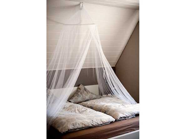 Ce grand voile se fixe simplement au plafond avec un crochet, puis se déploie sur les bords de votre lit. Pour garantir une protection maximale, les bords de l’ouverture se superposent. La maille 190 correspond à une dimension de 1,2 mm par maille. Les mailles sont si serrées qu’aucun moustique ne peut traverser la moustiquaire. Dormez enfin paisiblement la fenêtre ouverte.