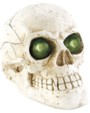 Les yeux de cette tête de mort s'allument dès la nuit tombée, et produisent une lueur inquiétante. Il suffit de placer le crâne sur un rebord de fenêtre, une terrasse ou dans le jardin.