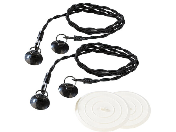 - Pack de 2 cordes à linge sans pinces avec ventouses, crochets, anneaux de fixation et 2 bouchons universels