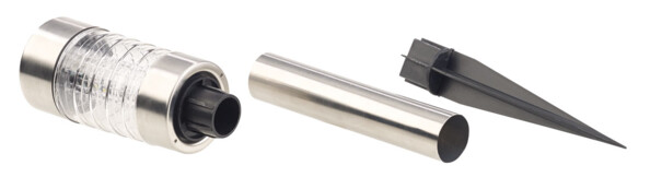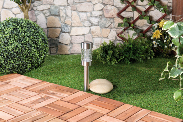 Plantez simplement la borne dans le sol : l'énergie solaire recharge sa batterie, et le capteur de luminosité se charge de l'allumer automatiquement du crépuscule à l'aube.
