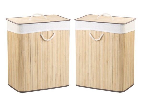 Lot de 2 corbeilles à linge en bambou couleur naturelle