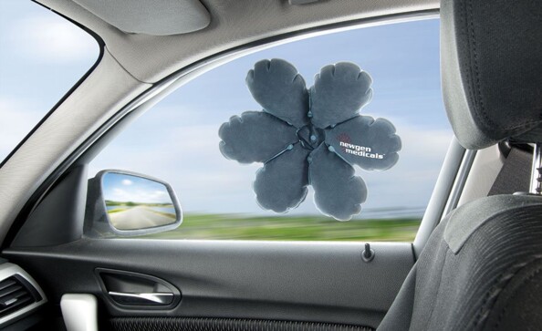 En voiture, en avion, en bus ou en train, la ventouse placée au centre de la fleur vous permet de fixer le coussin sur une vitre. Il permet ainsi de dormir dans une position plus confortable lors d'un trajet en voiture, et pourquoi pas créer un peu d'ombre.