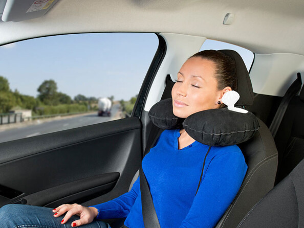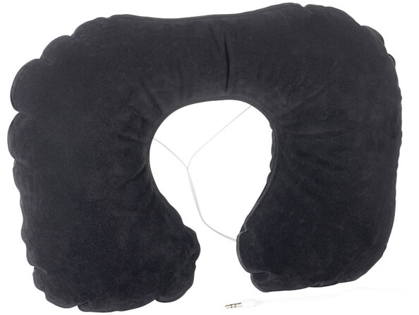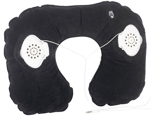 Pour des voyages confortables au son de votre musique préférée, des haut-parleurs stéréo sont intégrés à ces coussins gonflables tour-de-cou.