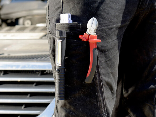 Toujours à portée de main : fixée à la ceinture, celle lampe-baladeuse légère ne vous quitte pas. Et grâce au pied magnétique, fixez la lampe à la carrosserie, par exemple. Vous gardez ainsi les mains libres pour travailler.