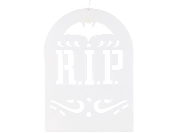 - Tête de mort, pierre tombale, confettis, fils de suspension