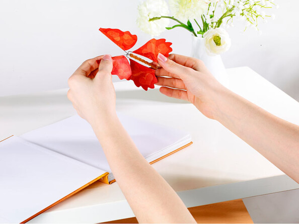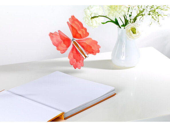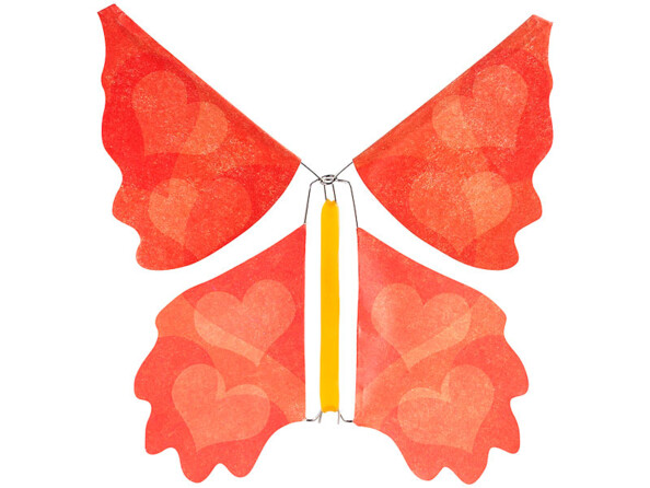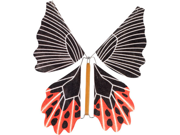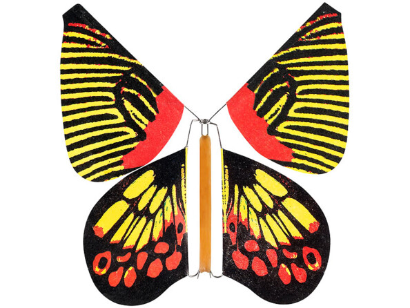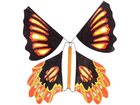 Chaque papillon est équipé d'un mécanisme spécial avec un élastique. Il suffit de tourner la paire d'ailes plusieurs fois pour tendre l'élastique... puis cachez le papillon dans un livre, une carte cadeau ou une enveloppe ! C'est une sacrée surprise quand le papillon géant s'envole de l'enveloppe ! Quel soulagement pour votre "victime" lorsqu'elle s'apercevra qu'il ne s'agit que d'un gadget en fil de fer et en papier.